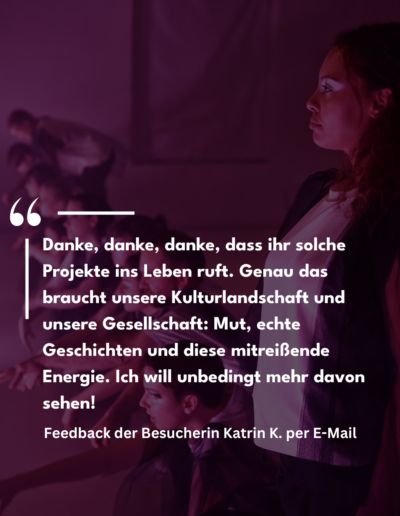 Diverses Theater kann gerne auch unbequem sein und uns zwingen, hinzuschauen, wo wir im Alltag oft aus einer privilegierten Position heraus wegschauen würden. Diverses Theater ist somit immer politisch – und genau das brauchen wir heute mehr denn je.