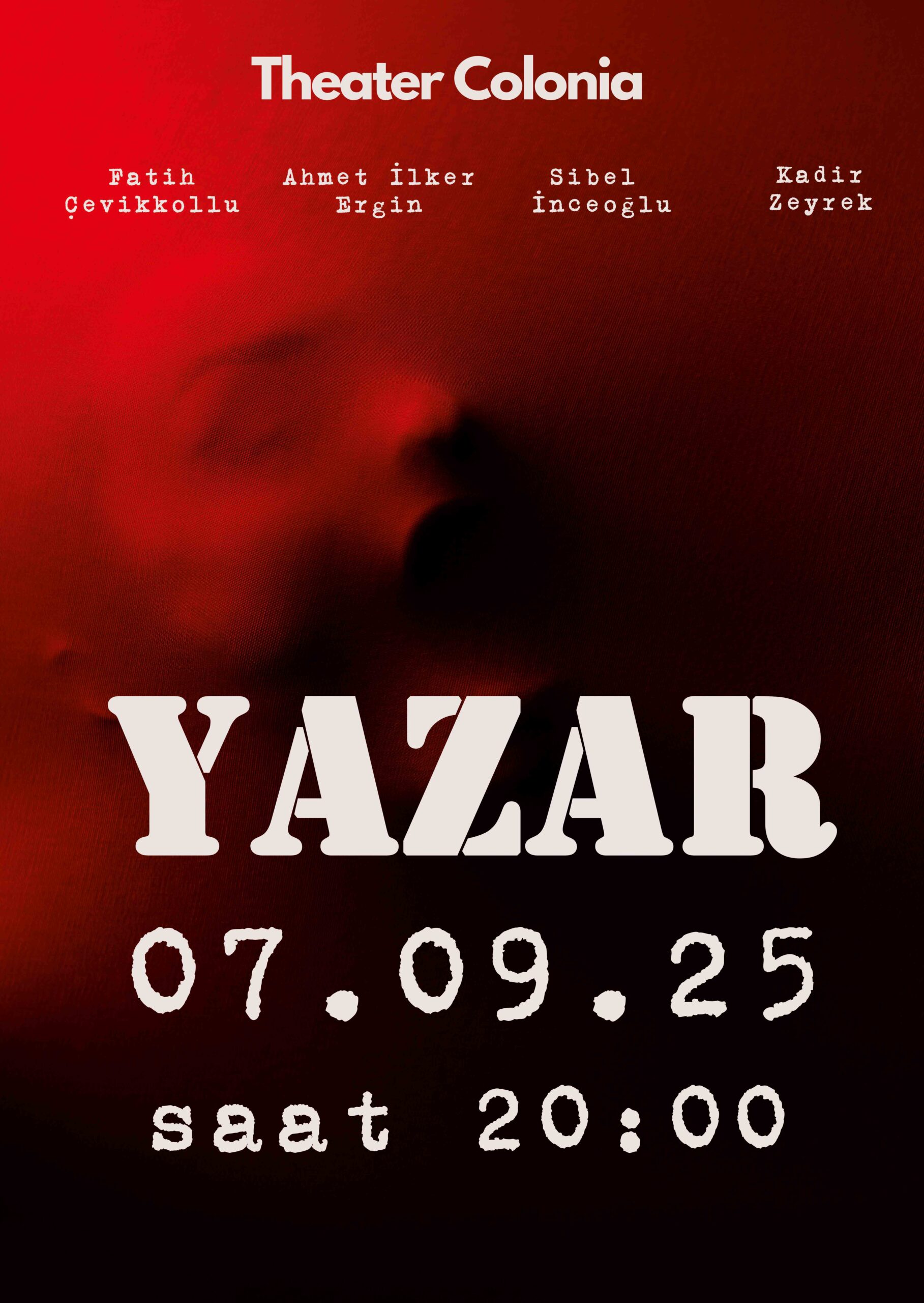 YAZAR, sahnede değil, tamamen izleyicinin zihninde canlanan sıradışı ve psikolojik bir tiyatro oyunu. Eser, izleme dürtüsünü, gözlerini kaçırma anını ve şiddetin toplumda nasıl estetik bir forma getirildiğini merkezine alıyor.